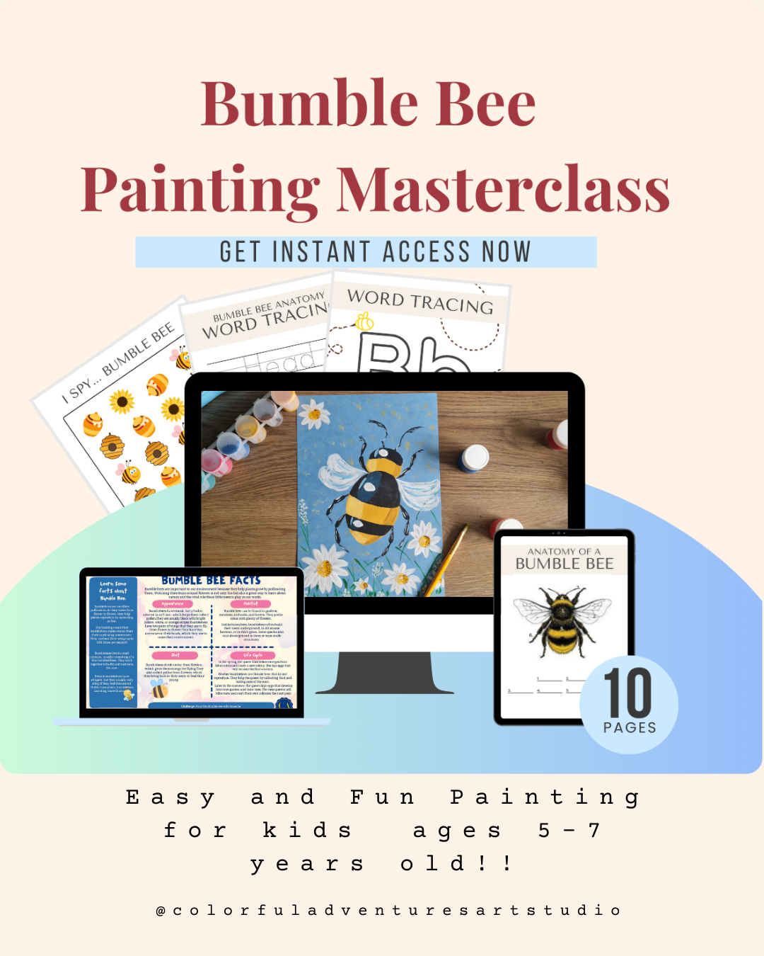 Click the Link below to Get INSTANT ACCESS to My SUMMER BUMBLE BEE Painting Masterclass for Kids Ages 5+/7 years Old...